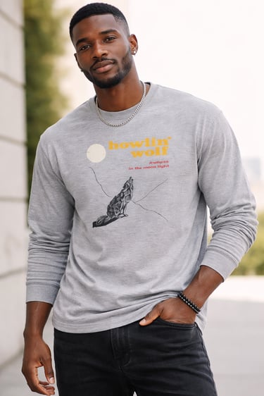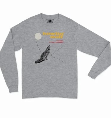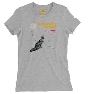 Bold shirts featuring iconic Howlin' Wolf vintage albums and logos.